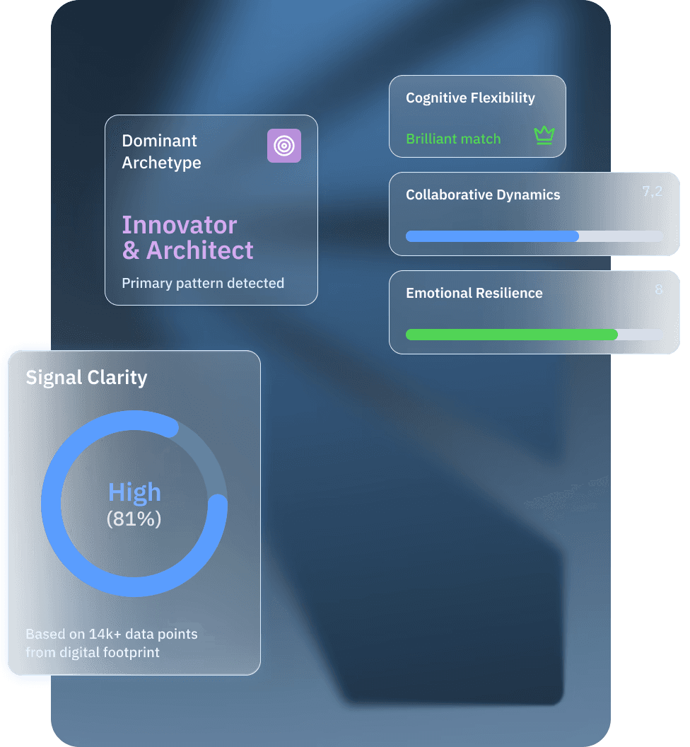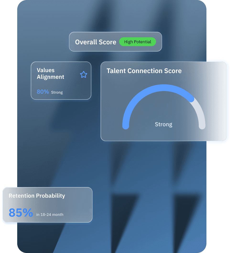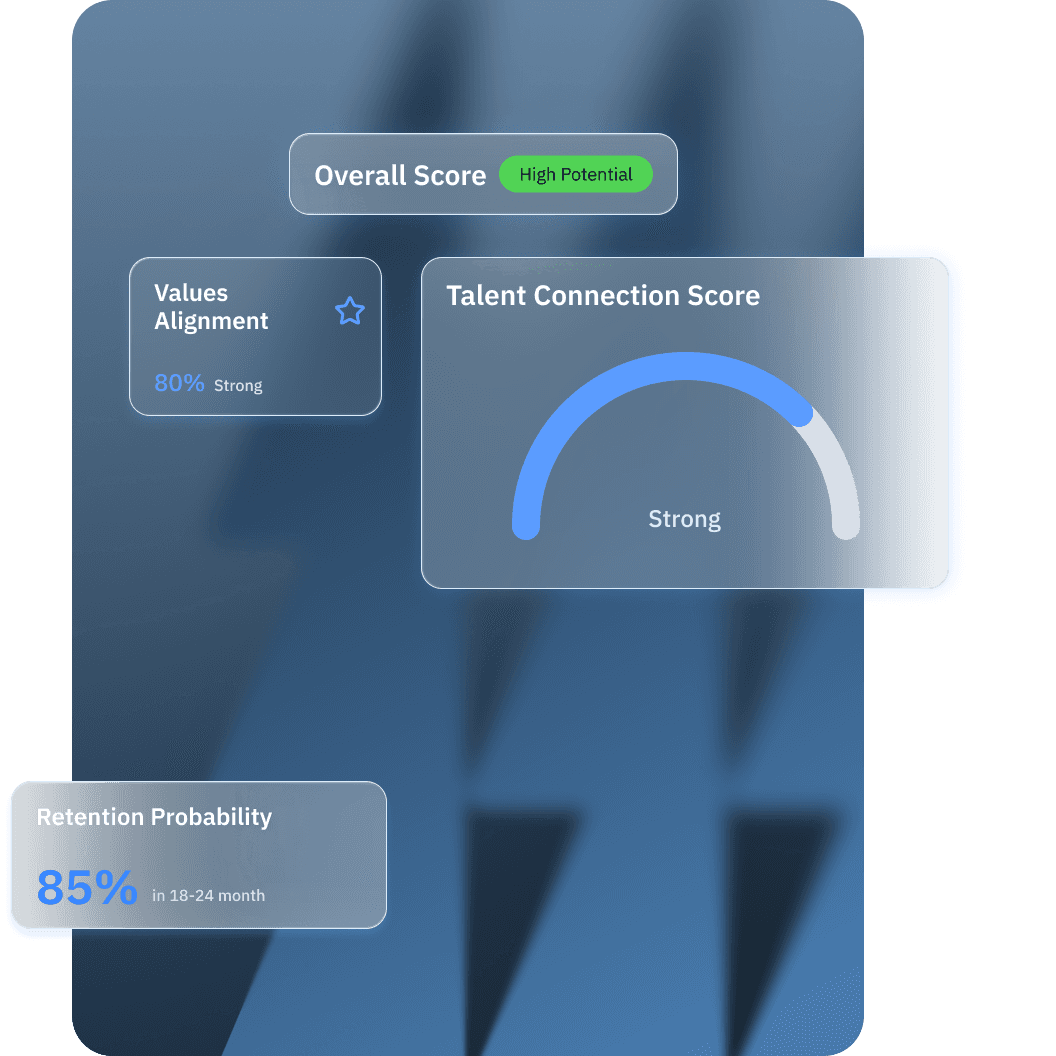 Our system brings together behavioural signals, role context and value alignment to create structured, transparent candidate insights
