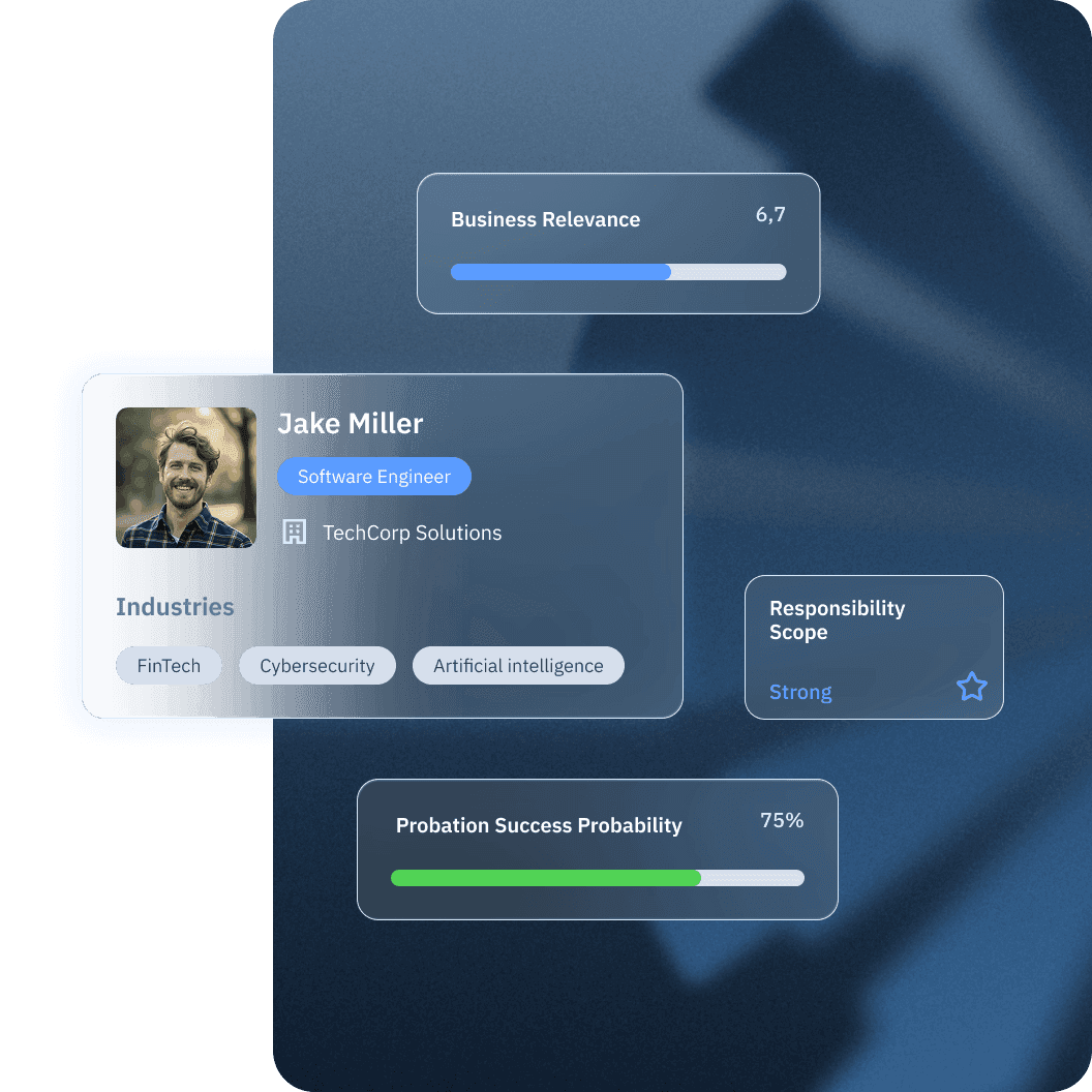 See clear scores, explanations, and key insights for every candidate. Candidates are evaluated automatically for each vacancy.